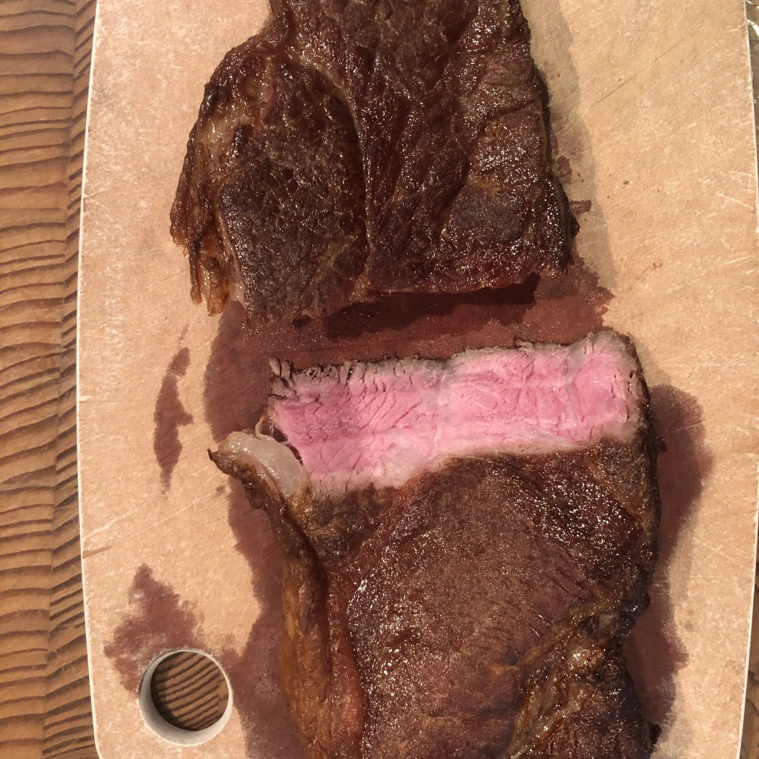 The result was a nicely cooked steak, but were I to do it again, I would not use a plain frozen steak. Rather, because on this first attempt my steak was under-seasoned, I would take a fresh steak and do a long dry brine (1% salt by weight for a minimum 4 hours), before freezing it. Also, I would use a much thicker steak to ensure the inside doesn’t overcook with first fry. Lastly, it might be interest to try a more flavourful oil to cook it in, maybe beef tallow?