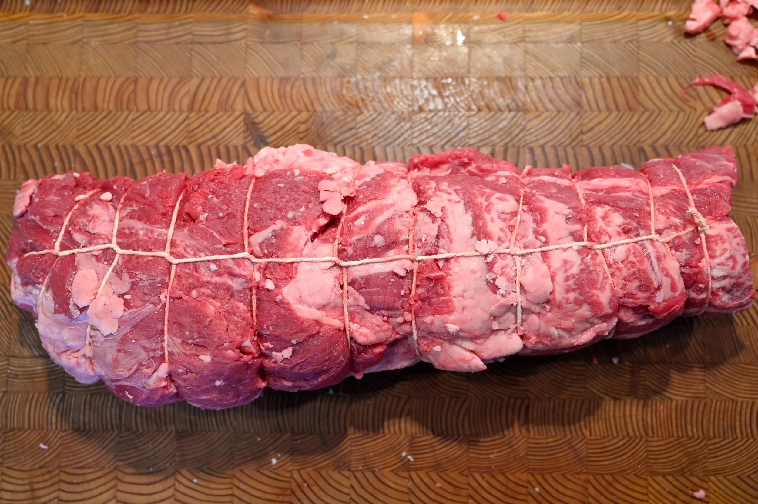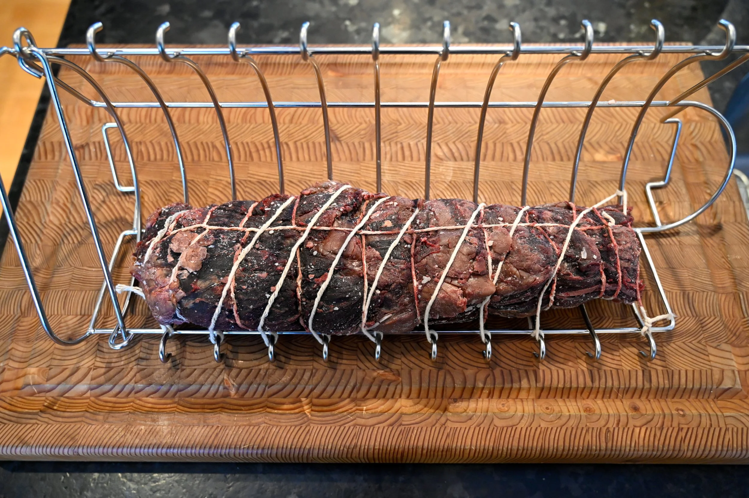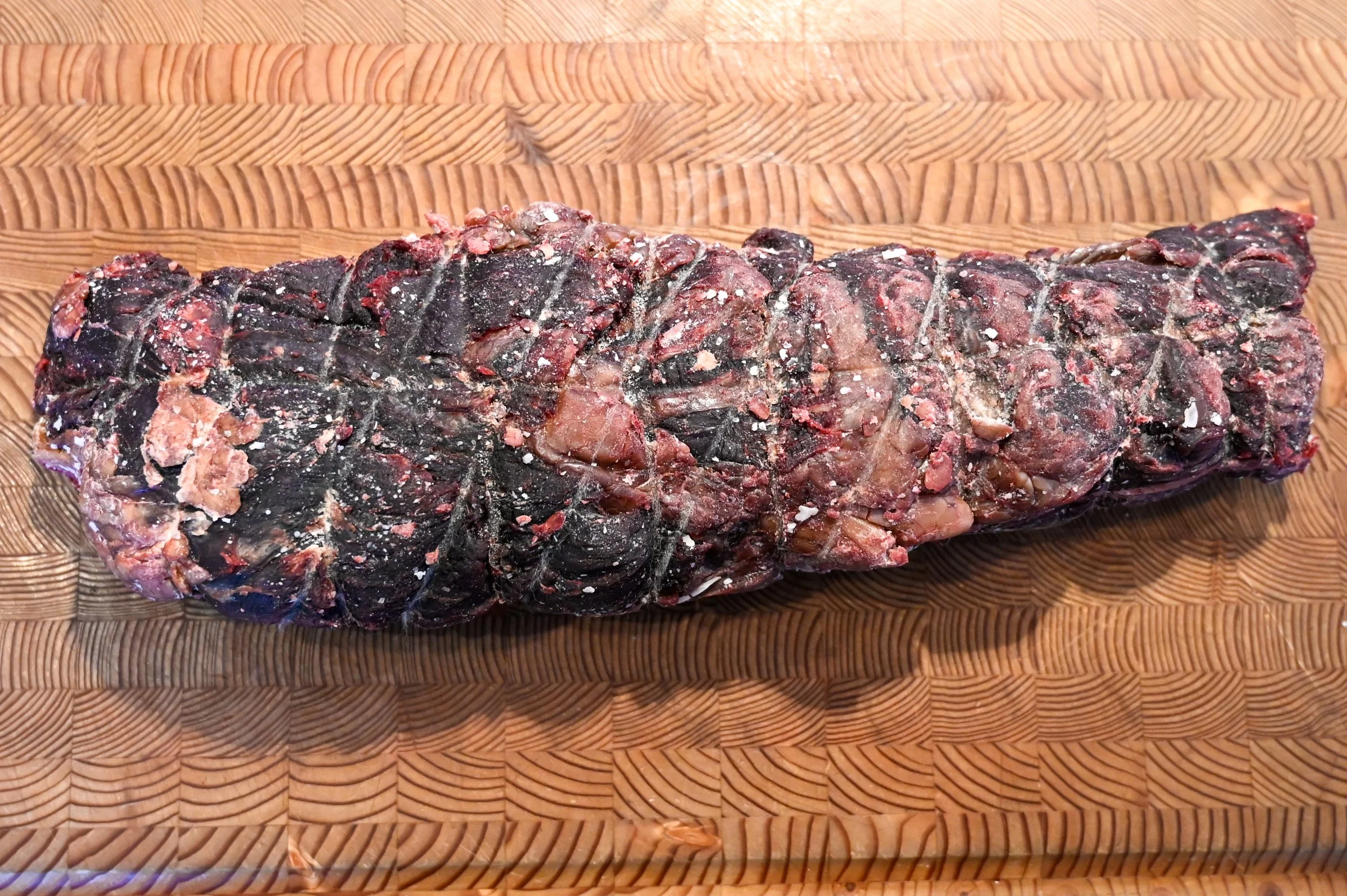 Filet tied off to create a reasonably uniform diameter so meat would hold its shape an DA evenly.