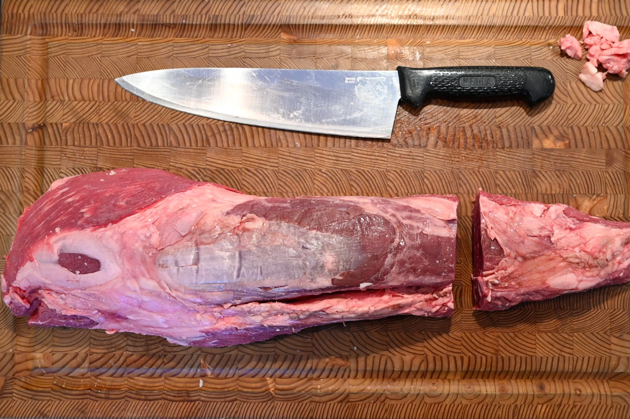 The trimmed bits yielded some chain meat, the tail, and two small tenderloin steaks. (See below)