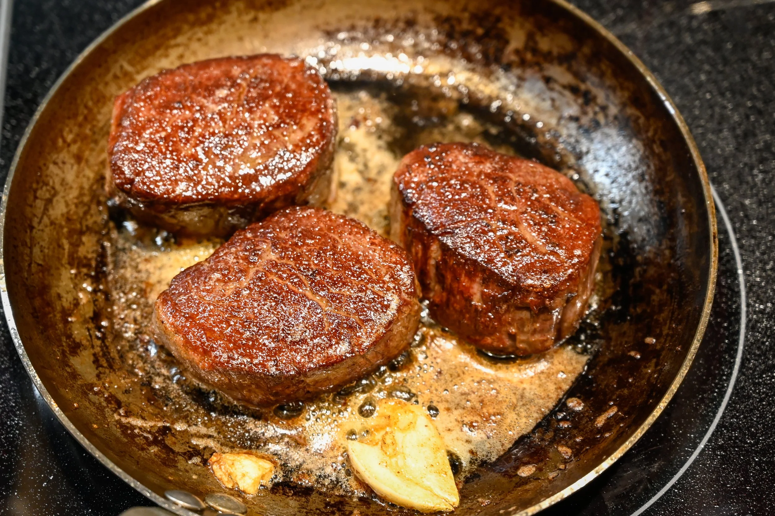 Lovely 15 day DA filet mignon pan seared in butter and garlic.